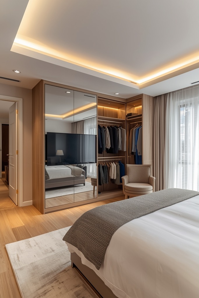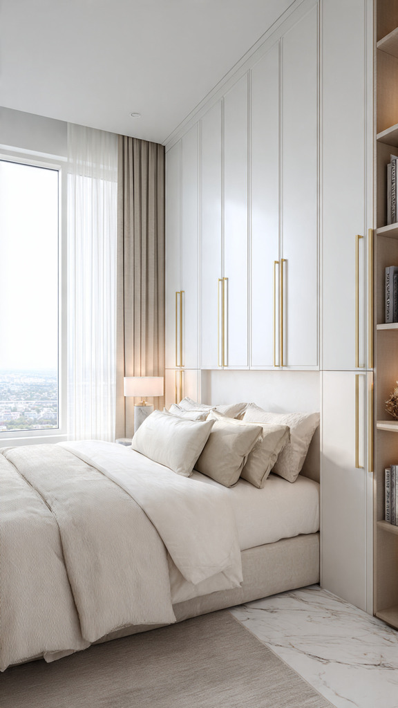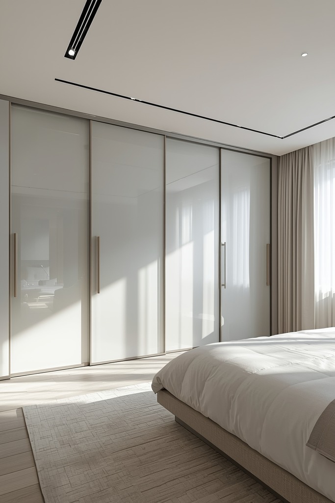 Floor to ceiling sliding panels can hide storage while keeping your room looking modern. Mirrored panels reflect light, making your room seem bigger. Frosted glass panels add style while keeping things private. Light colored panels create a calm look that fits well with your bedroom.