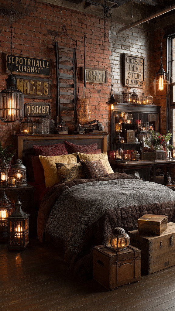 Vintage industrial accessories can include metal lanterns or wooden crates. Choose items that match the industrial look and your personal taste.