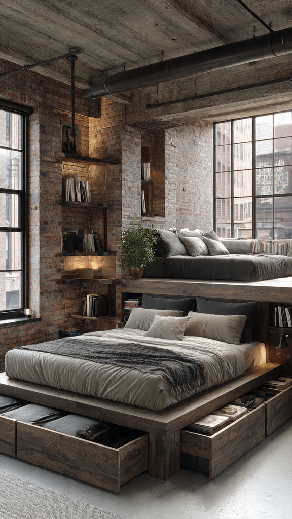 10. Achieve a Modern Industrial Bedroom with Smart Hidden Storage