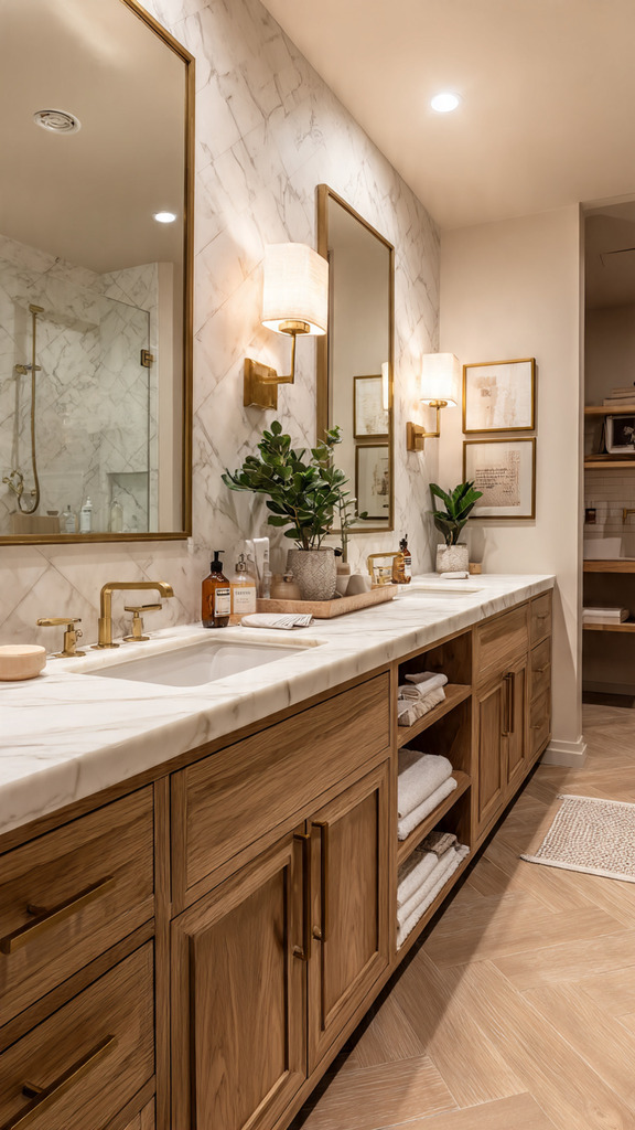 With careful planning, you can keep the sinks clutter-free. Each person has enough space for their belongings without overwhelming the other. This approach turns your morning routine into a peaceful, luxurious experience every day.
