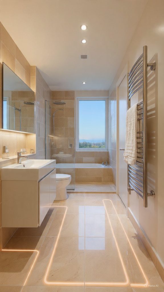 This setup is not just about comfort. It also boosts your home’s value. Buyers love bathrooms that feel like spas. The presence of towel warmers and underfloor heating is a big plus.