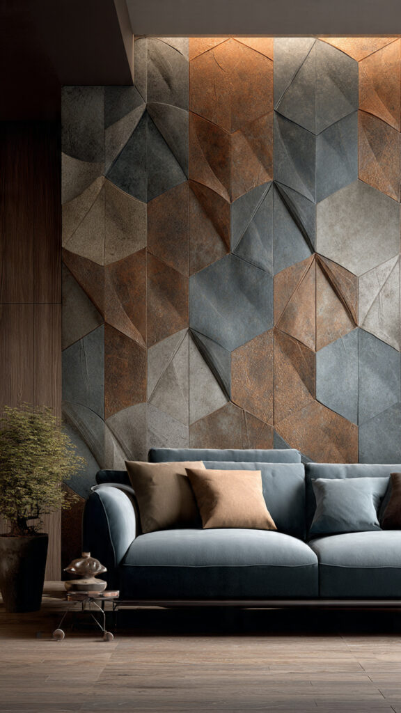 These tiles are great for creating unique wall textures. They can’t be easily matched with regular decor. This makes them perfect for adding a special touch to your living room.