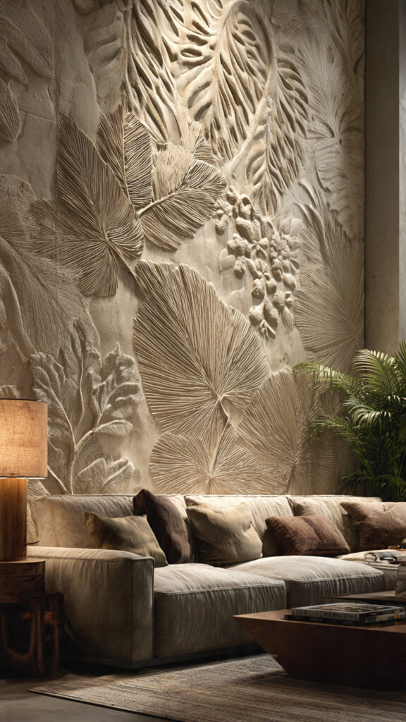 5. Floral and Botanical Relief Designs for Artistic Living Rooms