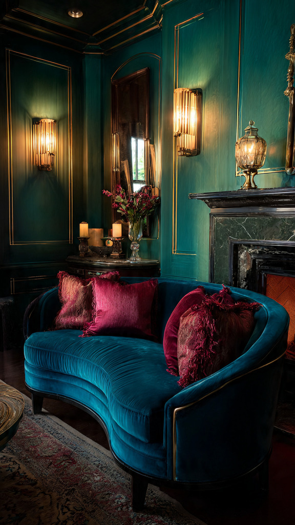 Using jewel toned colors in your Art Deco design creates a luxurious atmosphere. It’s perfect for a cozy retreat or a glamorous space for entertaining. Jewel-toned colors help you achieve your design goals.