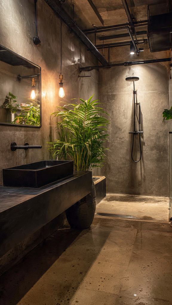 The industrial chic concrete canvas wet room is a mix of urban grit and elegance. It’s ideal for those who love the raw beauty of materials. This style adds a unique touch to any luxury home decor.