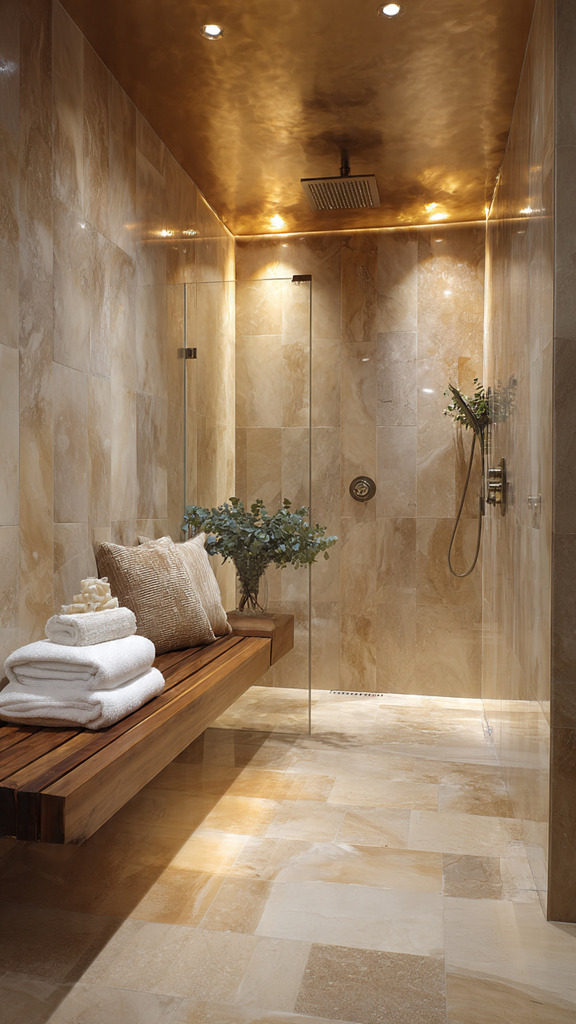 The open design lets you add cool features like floor to ceiling tiles and sleek fixtures. This boosts the luxury feel even more.
