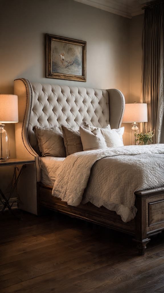In summary, wingback upholstered beds, especially with custom upholstered headboards, are a timeless choice for master bedrooms. They combine traditional charm with modern comfort, making them a standout option for enhancing bedroom design.