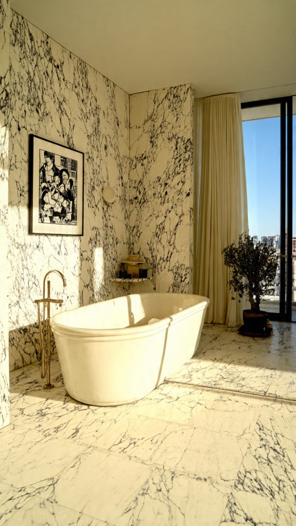 This is your chance to splurge on materials that are too pricey for bigger spaces. Imagine a wall of stunning zellige tile or a marble vanity top. In a bigger room, this would be too expensive.