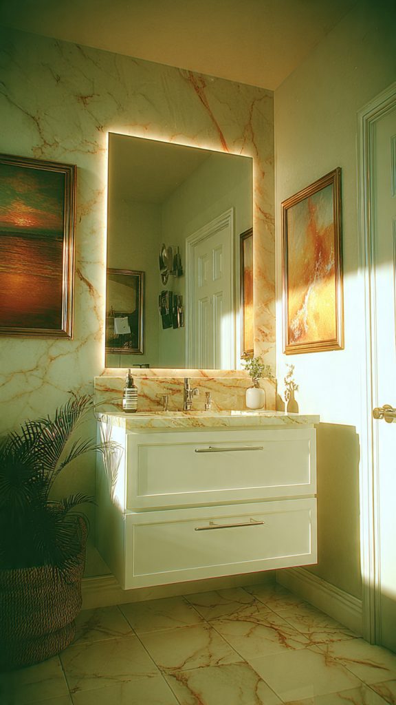 Add a small, decorative fixture for personality. A beautiful pendant or chandelier can be a focal point. Choose warm white (2700K-3000K) bulbs for a cozy, spa-like feel. They are more flattering and relaxing than cool-toned light.