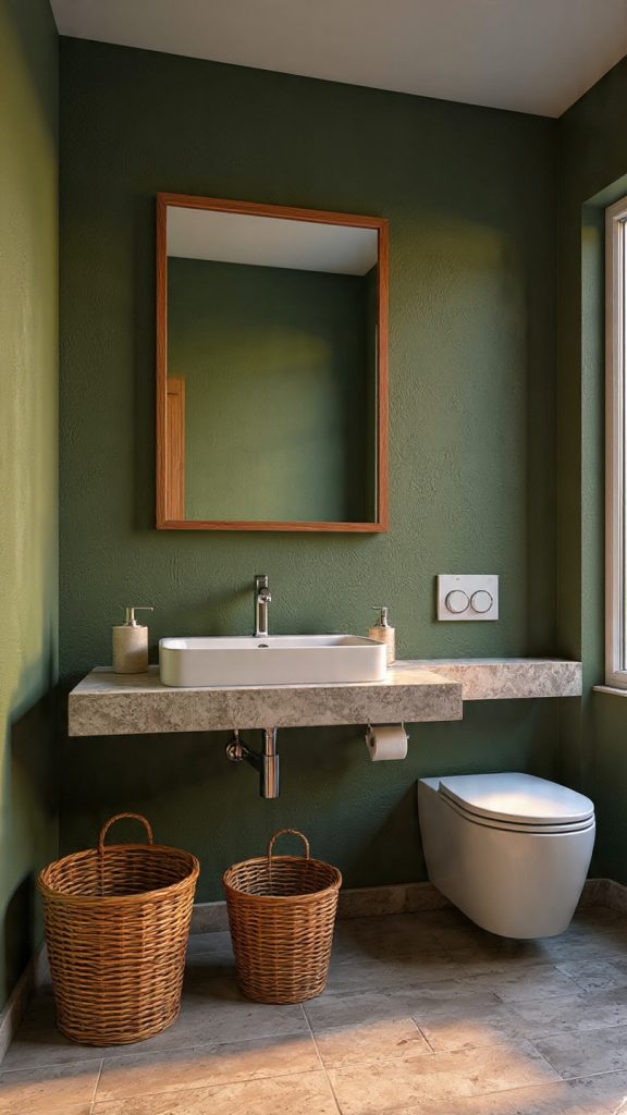 By choosing earthy greens and natural materials, your small bathroom becomes a peaceful retreat. It’s a small bathroom color scheme that looks and feels great, turning a functional space into a personal sanctuary.