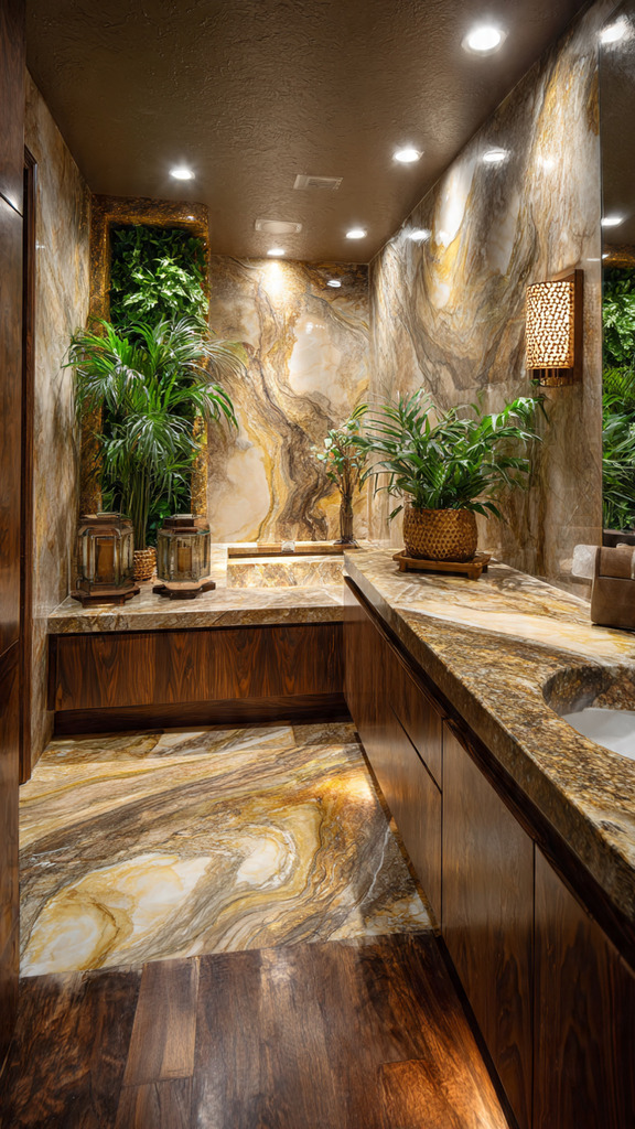 Natural stone is a top pick for luxury bathrooms. It’s durable and looks great forever. Marble, granite, and slate are favorites for a fancy look. You can use them for countertops, floors, and walls.