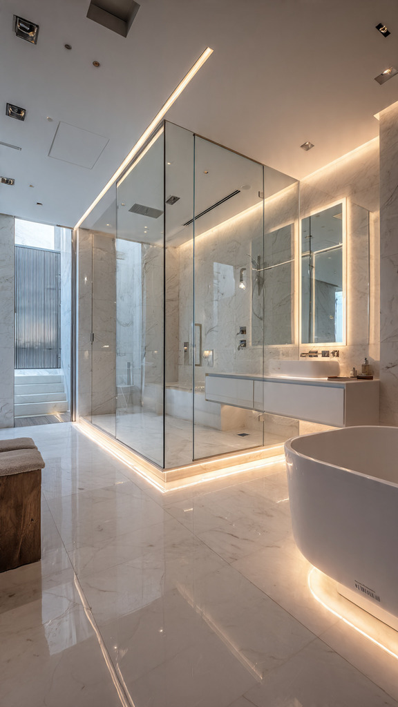 Smart technology in the bathroom lets you control your environment easily. For example, voice controlled lighting lets you change the ambiance without touching the lights. This adds to the luxury and makes the space more functional.