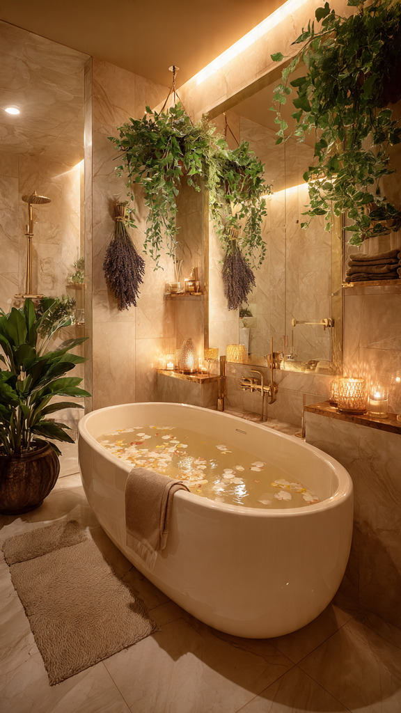 When designing your bathroom, think about wellness features. Consider a rain showerhead or a freestanding tub with jets. By focusing on aromatherapy and wellness, you’ll have a bathroom that’s both luxurious and relaxing.