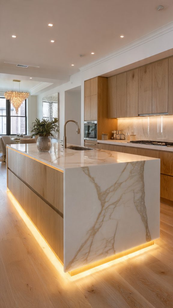 4. Floating White Oak Cabinets with LED Underlighting