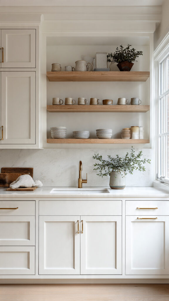 Your display can evolve with your taste without needing a full remodel. Swap out colorful bowls for earthy ceramics as seasons change. The classic foundation stays strong. For a complete look, consider pairing your shelves with fresh kitchen cabinets ideas that share the same timeless spirit.