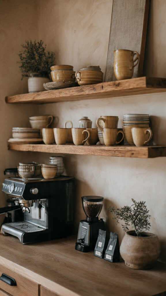 Think about your morning routine. A dedicated coffee bar on open shelves can transform it. You arrange your favorite ceramic mugs, a sleek grinder, and bags of fresh beans together. Add a small plant or a piece of art behind them. Suddenly, this isn’t just stuff on a shelf. It’s a curated vignette that sparks joy. This curation is the heart of great open shelving decor.