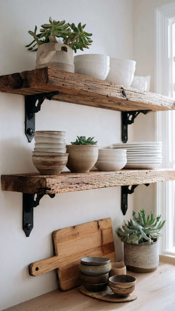 3. DIY Open Shelving with Reclaimed Character