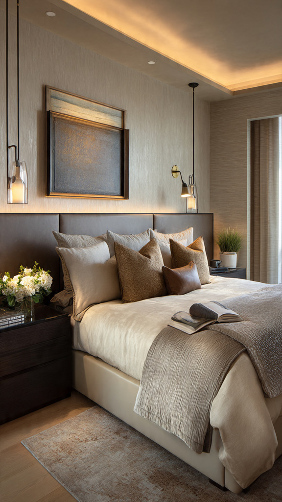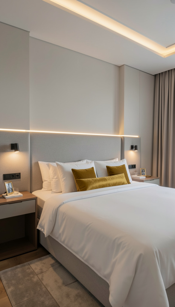 These lights also save space on your bedside table. This makes your bedroom look neat and helps you relax better. For more tips on making your bedroom look luxurious, read our article on bedroom lighting ideas.