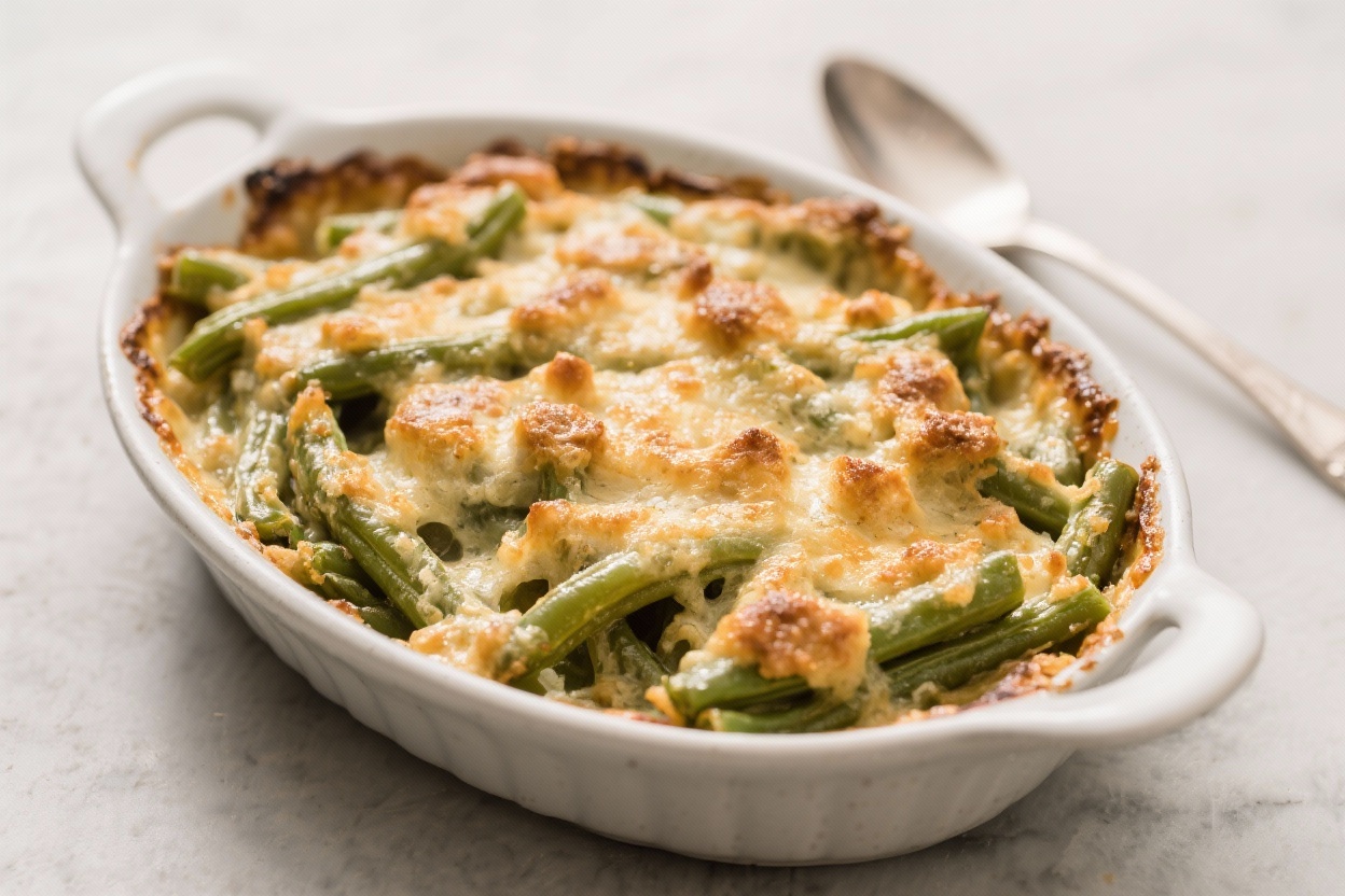 The texture is spot on: crisp-tender beans, velvety sauce, and a golden, crackly finish. If you’ve only had the classic version from a can, this one will win you over fast.