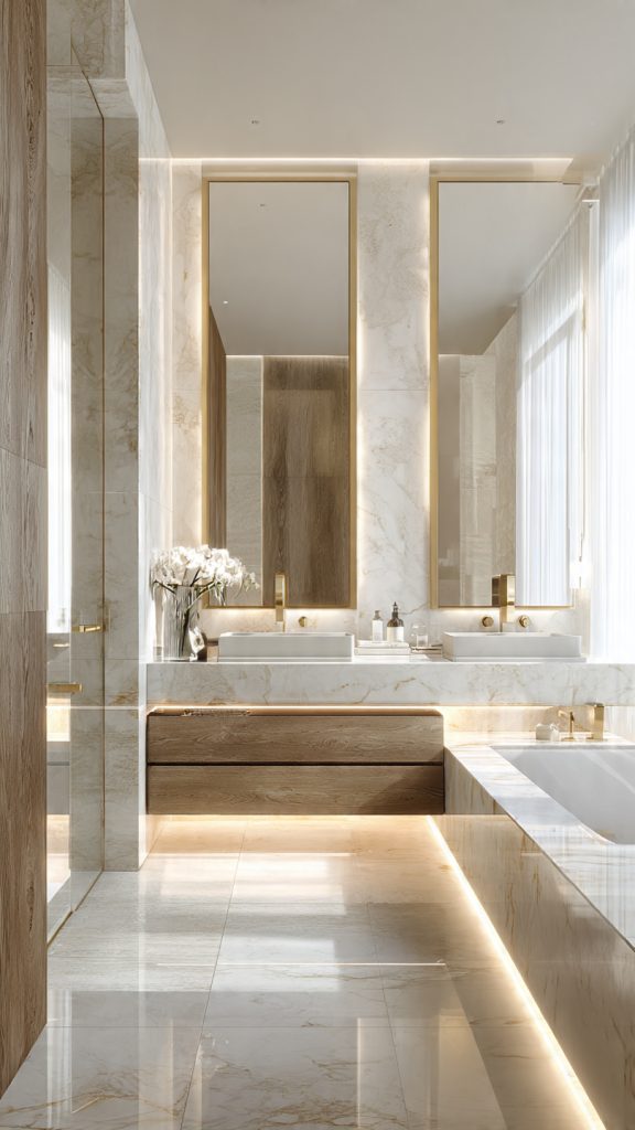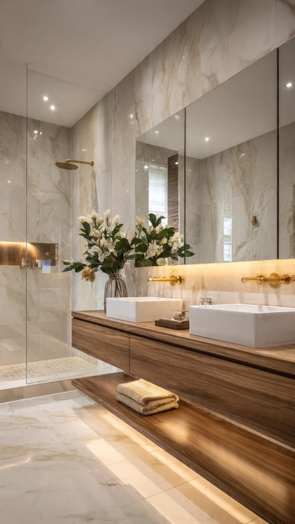 Consider who uses your bathroom and how much cleaning time you want. Do you prefer shiny surfaces or a soft look? Think about the mood you want in your bathroom. For more ideas, check out marble bathroom designs that elevate your space.