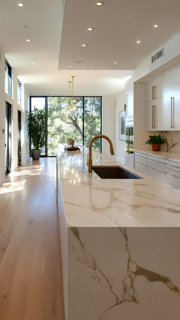 Quartz delivers exceptional durability and resists both scratches and heat. Its engineered composition means you can enjoy uniform patterns and various colors across the entire surface. This makes it ideal for homeowners who want a predictable, high-quality look that requires very little maintenance over time.